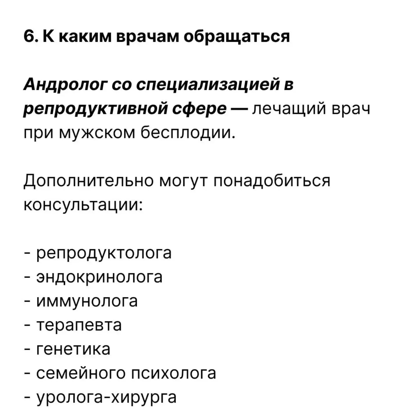 В центре лечения мужского бесплодия «Андроэксперт» проводятся онлайн-консультации с андрологом. Администратор подберёт удобное время, предоставит список необходимых анализов и поможет подготовиться к первичной консультации.